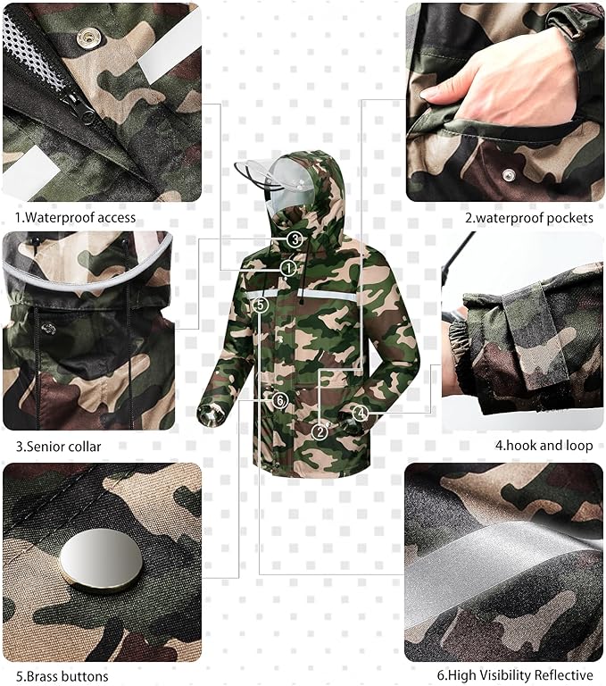 - Fabric: This raincoat is made of high-tech Nano polyester pongee 240T lotus leaves style waterproof fabric, it is waterproof, soft, comfortable, anti-oxidant, non-degumming, odorless and so on