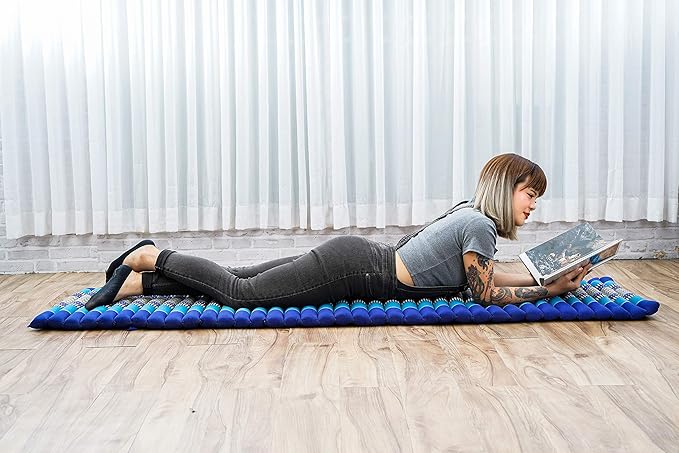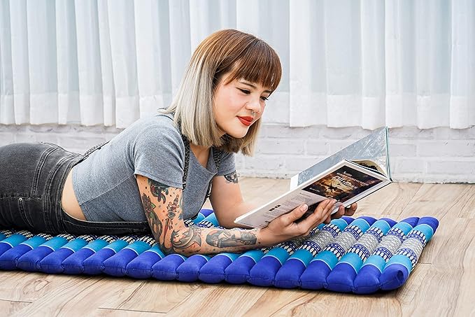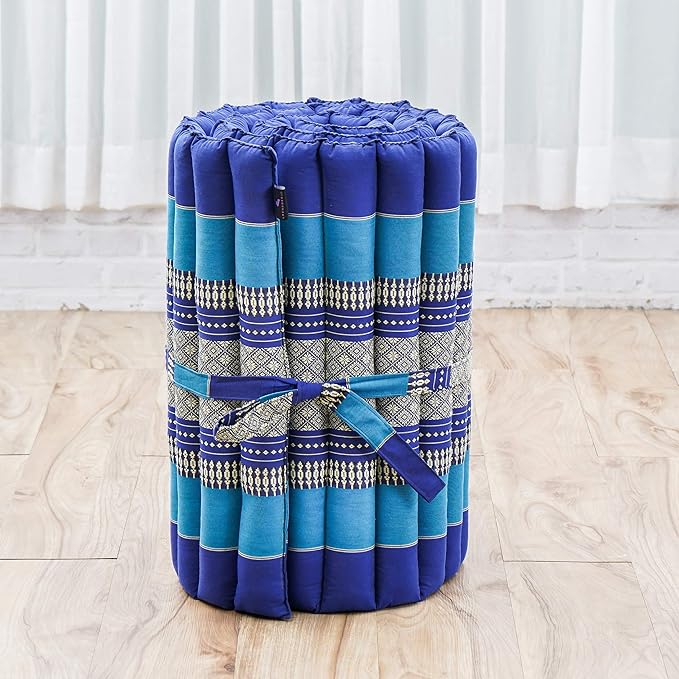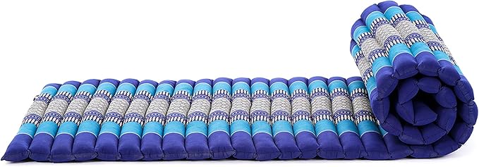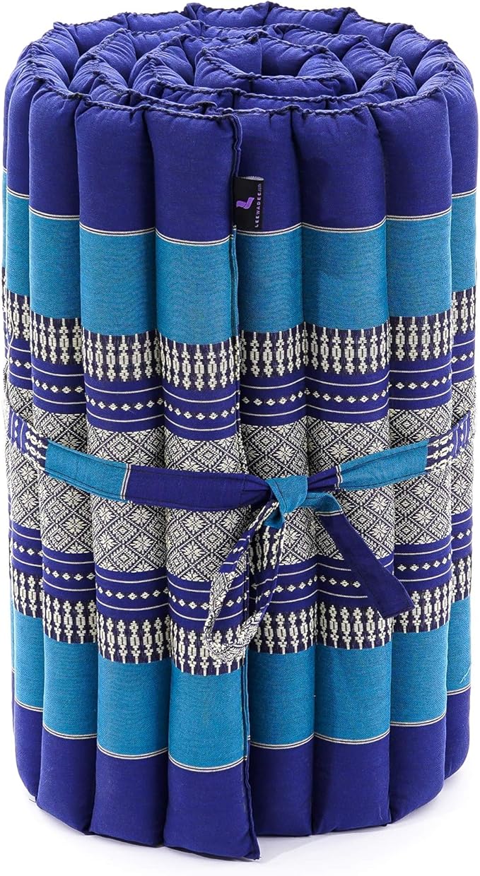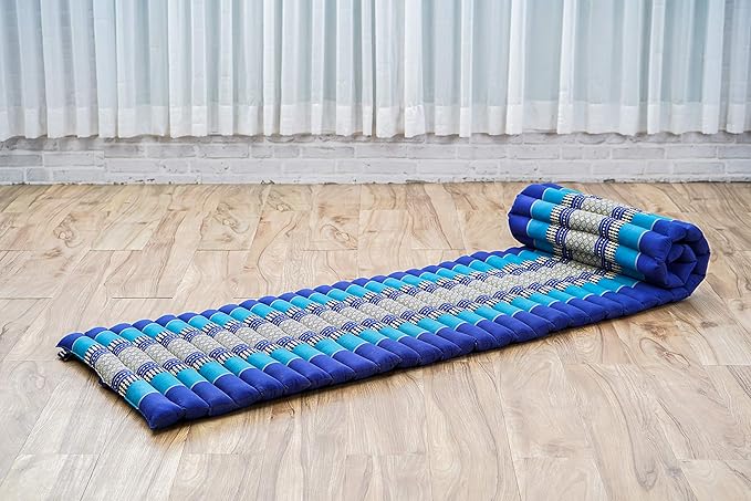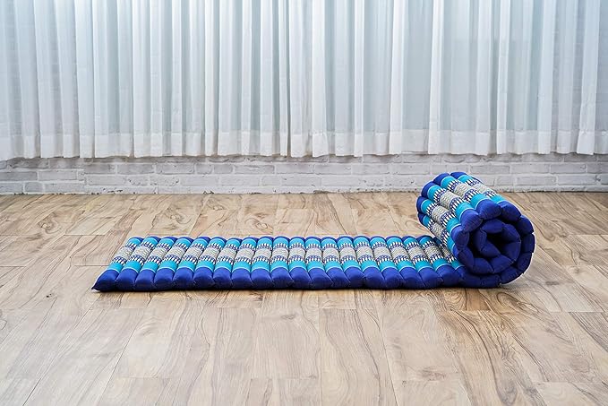 Leewadee - Foldable Floor Mattress - Japanese Roll Up Futon -Trifold Tatami Mat- Guest Floor Bed - Camping Mattress - Thai Massage Mat, Kapok Filled, 75 x 20 inches, Blue