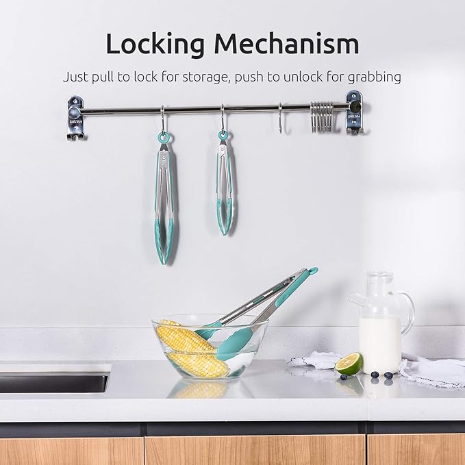 - [Dishwasher safe & easy to store] Food will not stick to the tong so that you can use a quick wipe and rinse it with hot soapy water or just throw them in the dishwasher. They can be locked and stored in your kitchen drawer or hung on the wall with ring for easy access. 28.6% persons love that. Multiple colors available to match your kitchen.