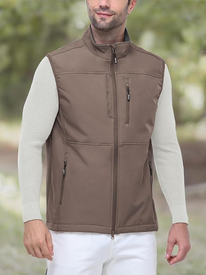Outdoor Ventures Men's Running Vest Outerwear, Lightweight Windproof Fleece-Lined Softshell Sleeveless Jacket for Golf