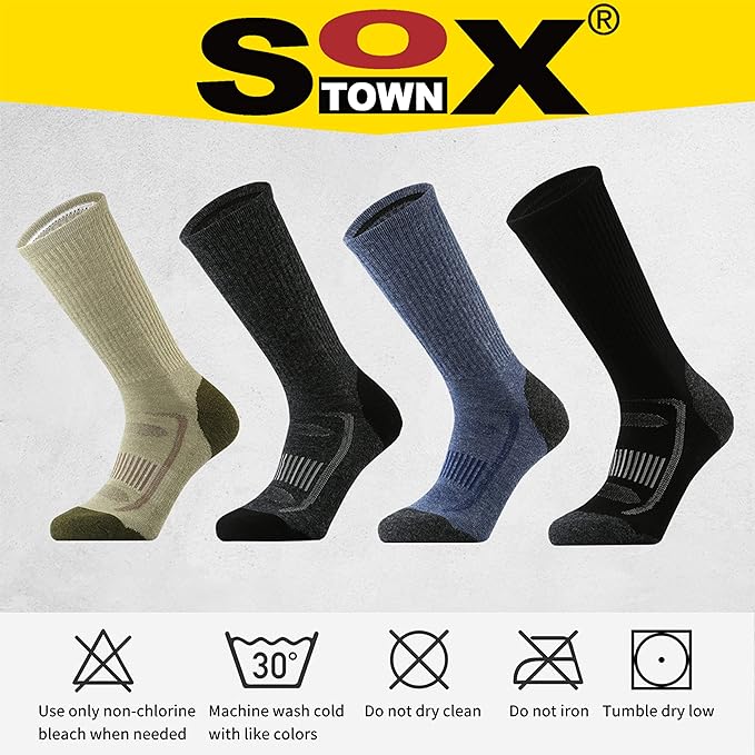 SOX TOWN Men's Merino Wool Cushion Crew Socks for Outdoor Hiking Hike Trail Performance Moisture Wicking Lightweight Summer