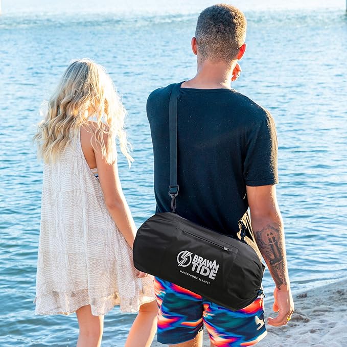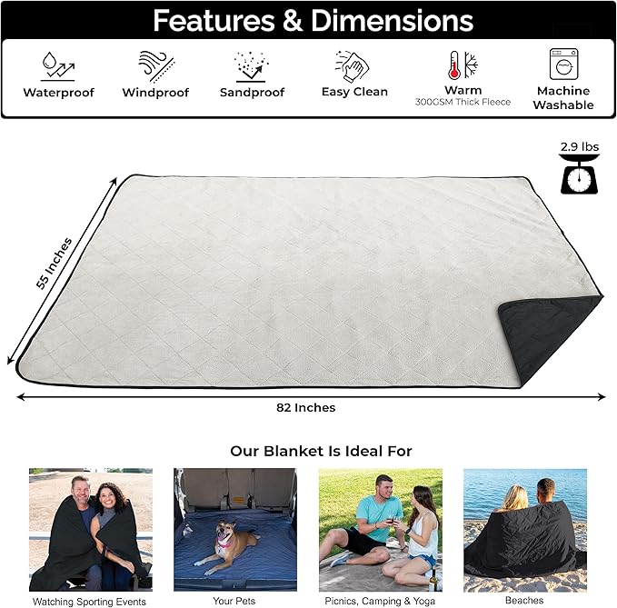BRAWNTIDE Large Outdoor Waterproof Blanket - Extra Thick Fleece, Warm, Windproof, Sandproof, Quilted, 82" x 55", Ideal for Beaches, Picnics, Camping, Stadiums, Dogs, Car