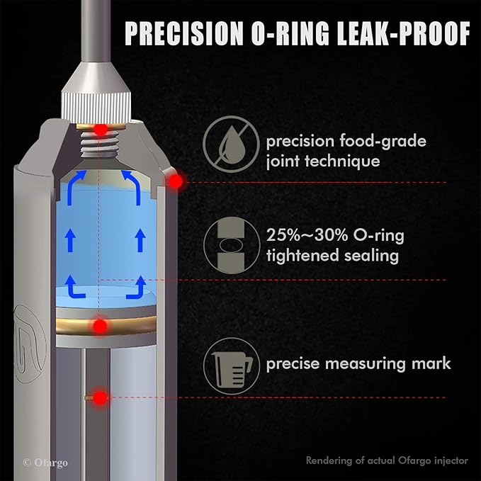 - Safe Kitchen/BBQ Tool: stainless steel for meat injector barrel/syringe plunger/meat needles; silicone for O-ring seals; food safe for parts touching marinade/food ingredients, to keep your family safe and healthy