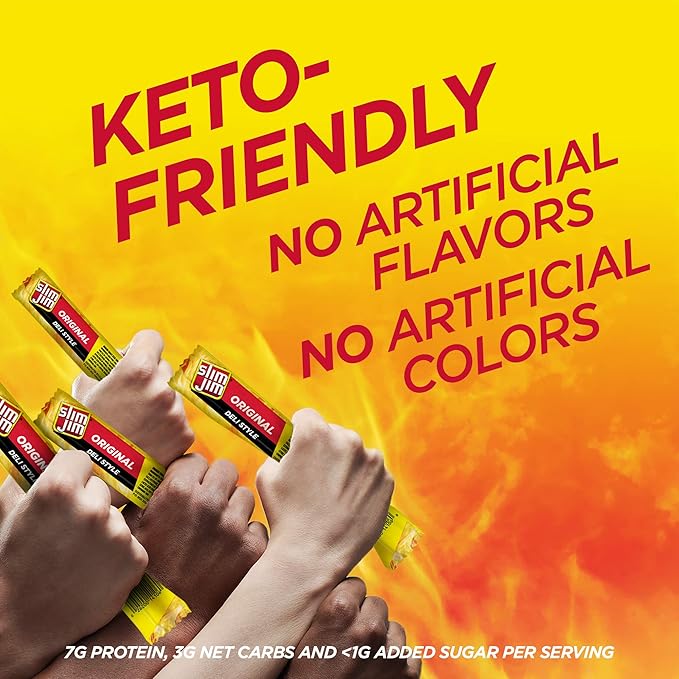 - Slim Jim Deli Style Snack Sticks are locked and loaded with an energy-maintaining, belly-filling 6 grams of protein in each serving