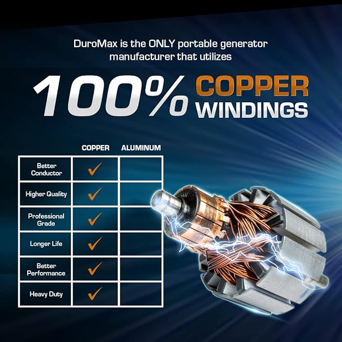 - Built using a powerful 457cc OHV DuroMax engine and features ALL COPPER WINDINGS designed to make your generator last for years.