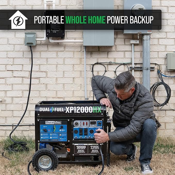 DuroMax XP12000HX 12,000-Watt Dual Fuel Portable Generator - Gas & Propane, Electric Start, Whole Home Power Backup, Transfer Switch Ready, RV & Emergency Ready