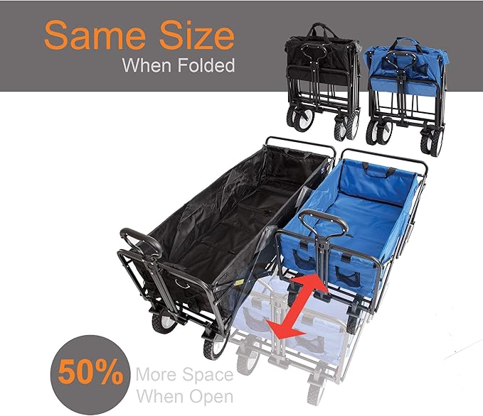 - ROOMY INTERIOR - Large capacity folding wagon opens to 49.5" L x 18" W x 11" H