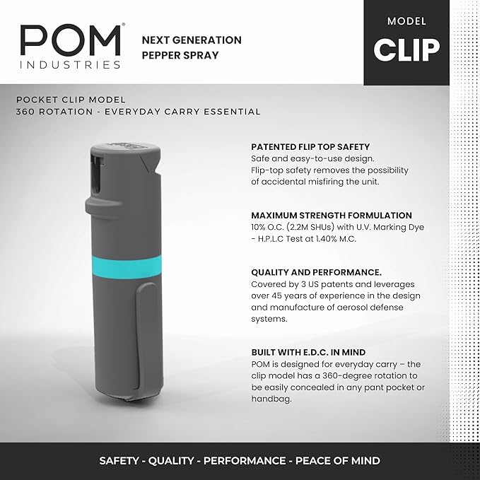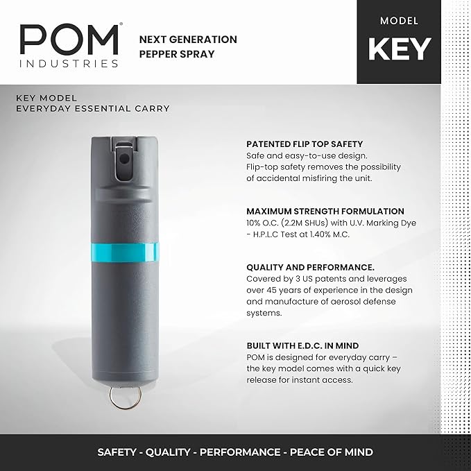- PEPPER SPRAY TRUSTED BY ELITE TRAINERS ACROSS THE NATION: POM leverages over 40 years of industry experience in the manufacturing of aerosol defense products to bring the safest and easiest-to-use self-defense product on the market.