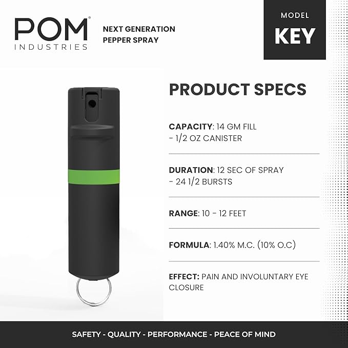 - PEPPER SPRAY TRUSTED BY ELITE TRAINERS ACROSS THE NATION: POM leverages over 40 years of industry experience in the manufacturing of aerosol defense products to bring the safest and easiest-to-use self-defense product on the market.