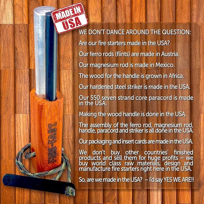 - SUPERIOR FERRO ROD / FLINT made in Althofen, Austria. A century of craftsmanship combines with high tech expertise to produce ferrocerium unmatched by anything in the world. Intense shower of hot sparks reliably ensure thousands of first strike fire starts.