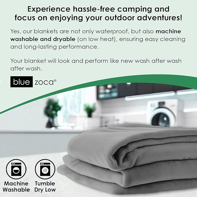 - 100% WATERPROOF - Blue Zoca outdoor travel blankets are designed to withstand water, wind, and weather. These waterproof and shake-clean blankets are camping essentials, great for hiking, and perfect when you’re a spectator at sports & outdoors activities.