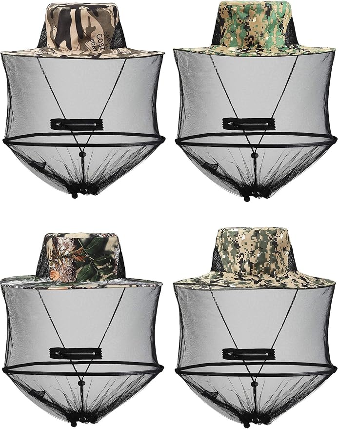 - 4 Pieces with different colors: come with 4 different color mosquito face hats, specific patterns please refer to pictures, durable and lightweight to use, foldabe for easier storing and carrying, enough for family use; A black zipper on the mesh net, convenient for drinking or eating without taking off hat