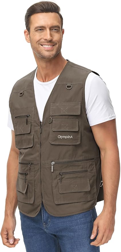 - Features: Zipper front, V neck, 14 functional pockets and 3 "D" rings, serves for travel, volunteer, hiking or just for very tasteful casual wear