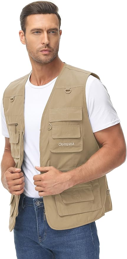 - Features: Zipper front, V neck, 14 functional pockets and 3 "D" rings, serves for travel, volunteer, hiking or just for very tasteful casual wear
