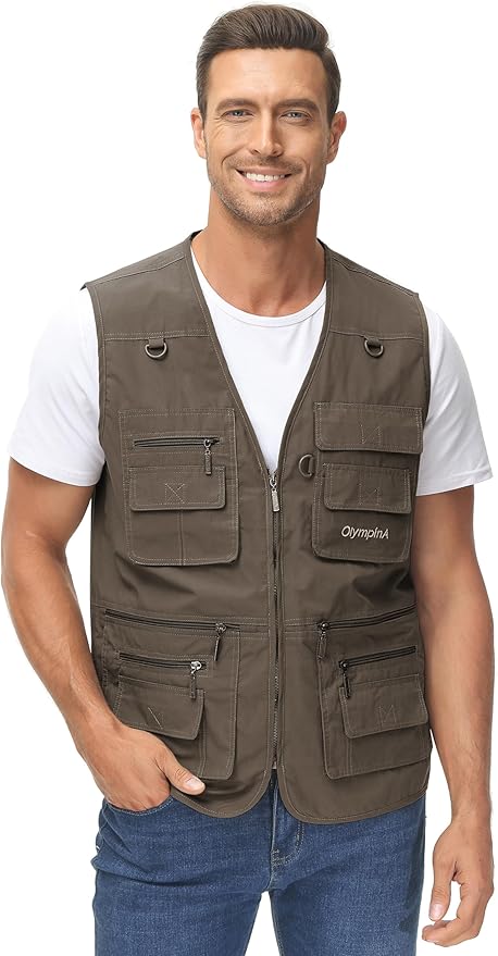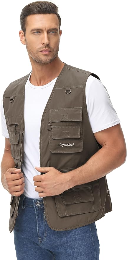 - Features: Zipper front, V neck, 14 functional pockets and 3 "D" rings, serves for travel, volunteer, hiking or just for very tasteful casual wear