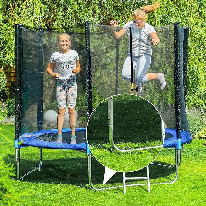 - 【EASY INSTALLATION】 No auxiliary tools required. The chisel pointed end makes the trampoline stakes penetrate into the ground easily. You can step on it to make the rebar stake penetrate deeper into the ground.
