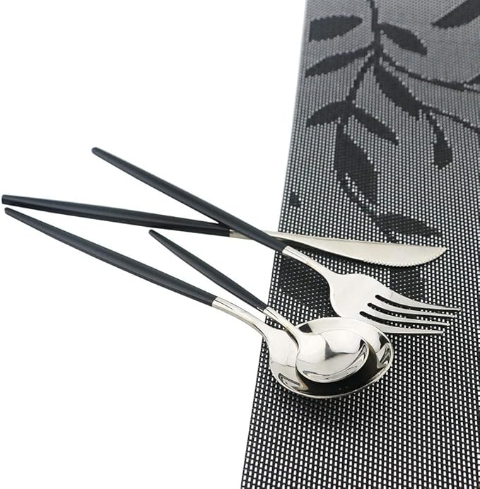 - 【Nice Weight & Dishwasher Safe】: The thin and light weight of this metal flatware ensure you to have a nice grip. These black or colorful dinnerware set are dishwasher safe, no more worry about color fading.