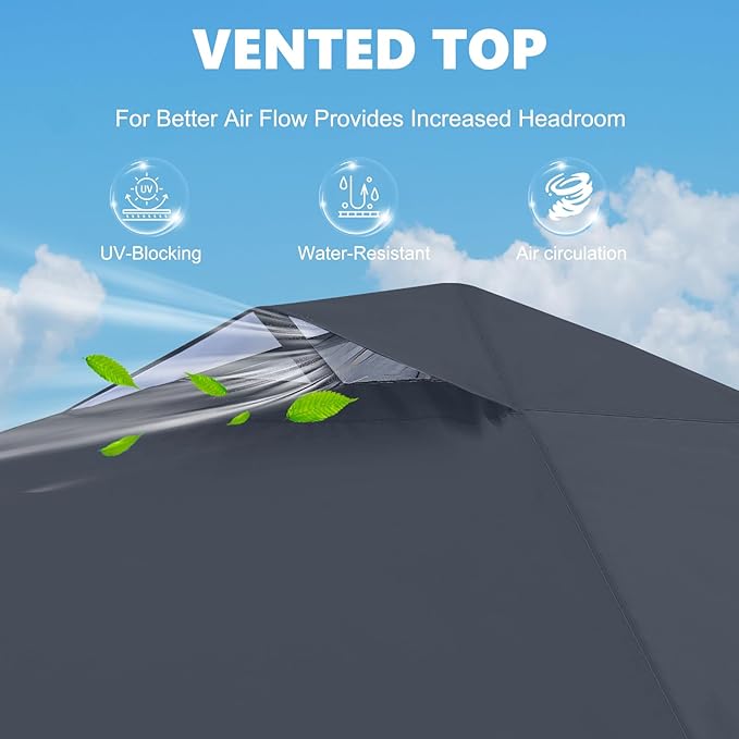 - Canopy Materials: Polyester fabric, silver-coated inside. Professionally protect you from sun, wind and rain with 100% water-resistant and 50+UV protection fabric and heat sealed seams.