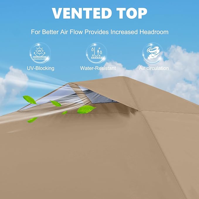 - Canopy Materials: Polyester fabric, silver-coated inside. Professionally protect you from sun, wind and rain with 100% water-resistant and 50+UV protection fabric and heat sealed seams.
