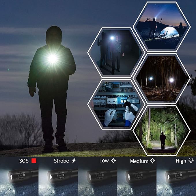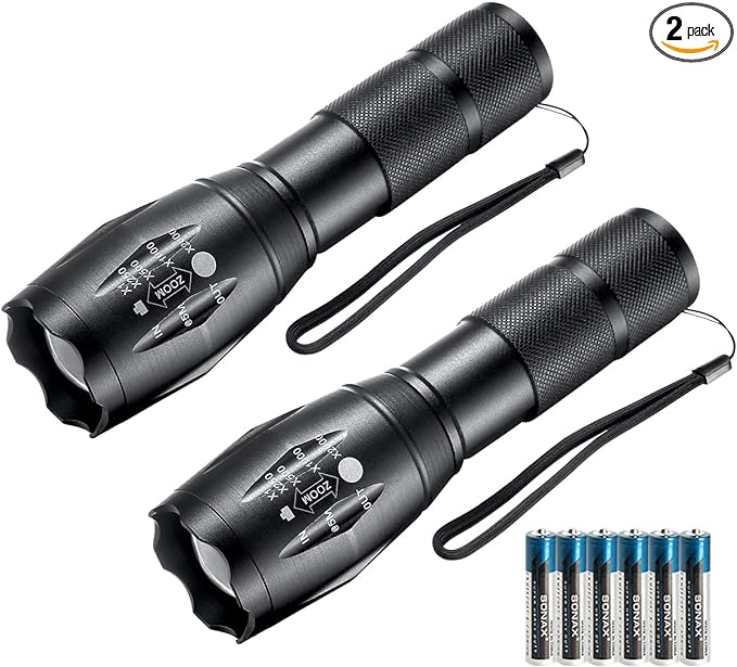 LED Flashlights, 2 Pack Tactical Flashlight High Lumens Lights with 6Pack AAA Batteries Portable Waterproof Zoomable Flashlight with 5 Mode for Camping/Outdoor/Hiking/Gift-Giving/Emergency