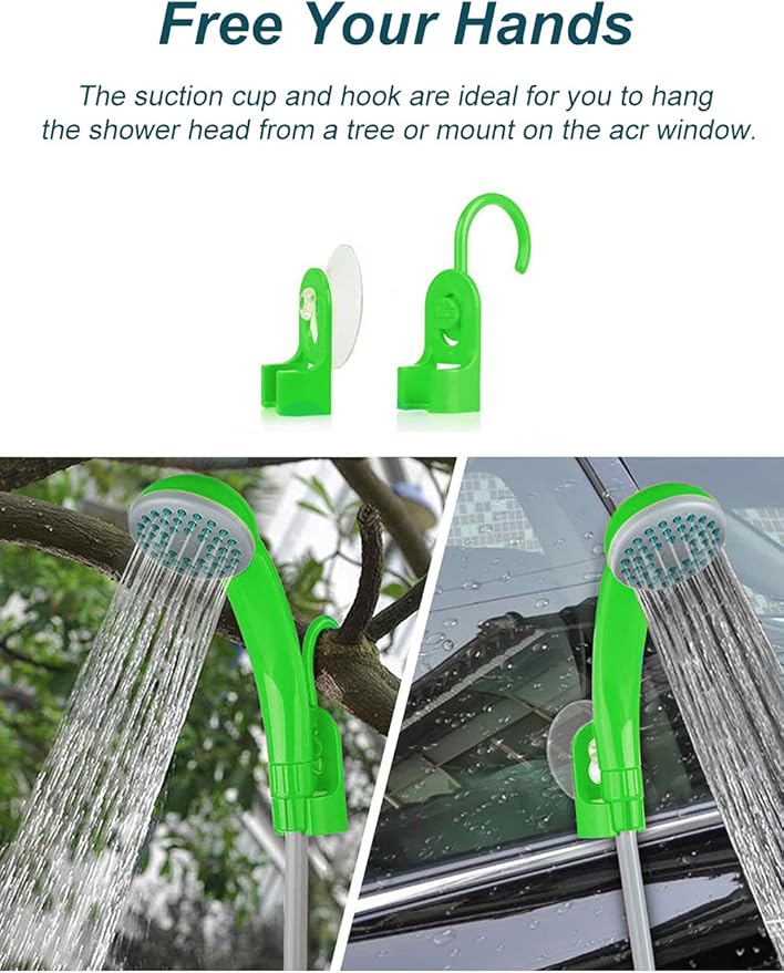 - MULTIPLE-USES PORTABLE SHOWER: Suitable for INDOOR/OUTDOOR showering, camping, BBQ, hiking, traveling, kid bathing, pet cleaning, car washing, plants watering, windows and backyard cleaning. Ideal gift for family, friends on Christmas, Birthday, Father's Day, Mother's Day, Children's Day, etc.