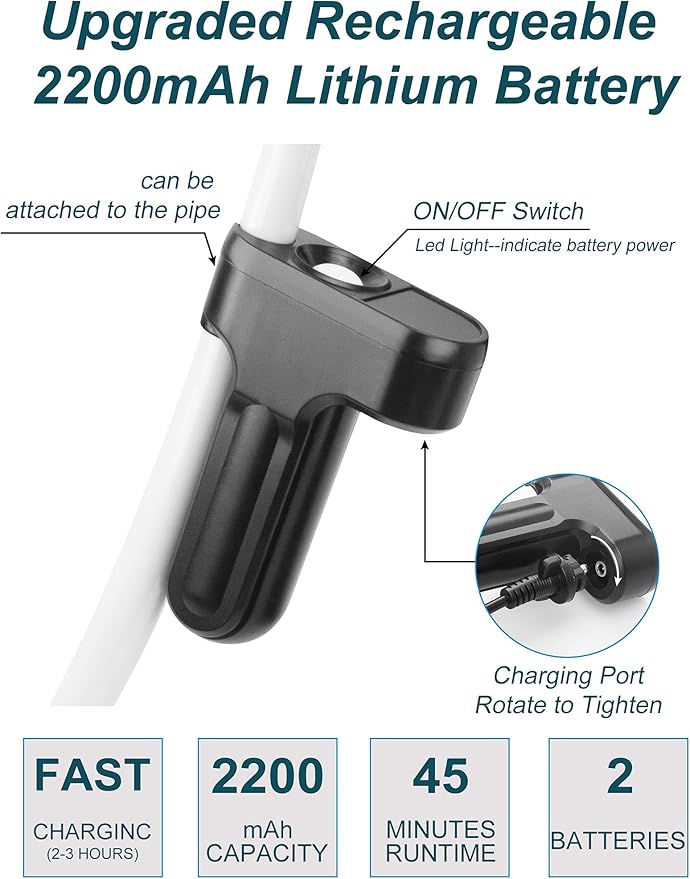 - 2 BATTERIES for 120 MINS RUNTIME: innhom portable shower for camping come with 2 detachable batteries and a charging cable, direct charge from USB port, car adapter or computer, laptop ( output of 5V/1A~2A ). Full charge of 2 batteries allows 90-120 mins of continuous use. LED light on battery switch can indicate the battery power.