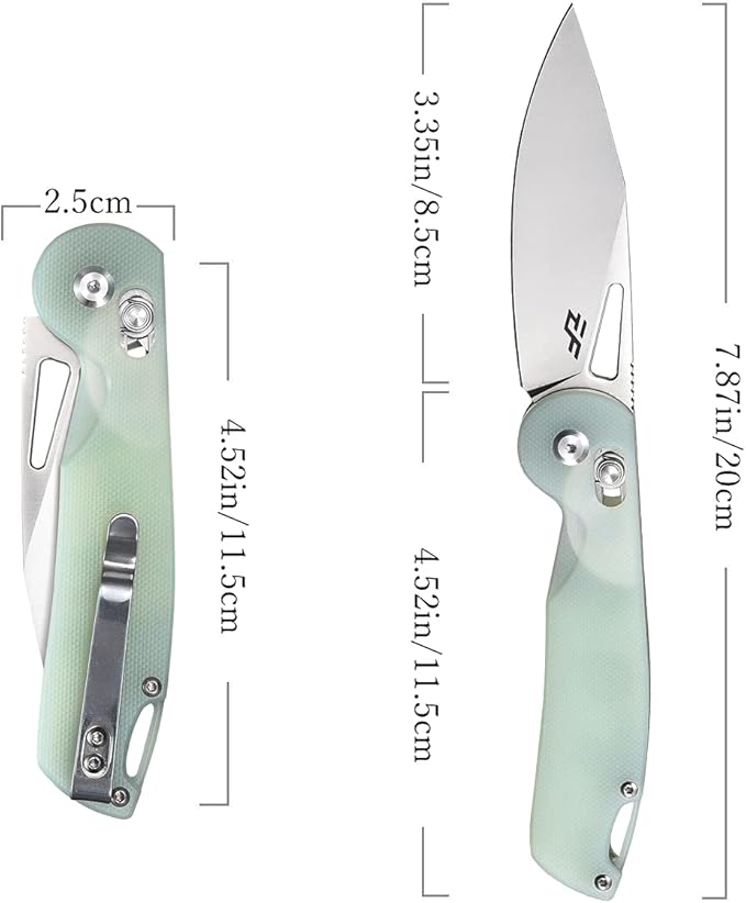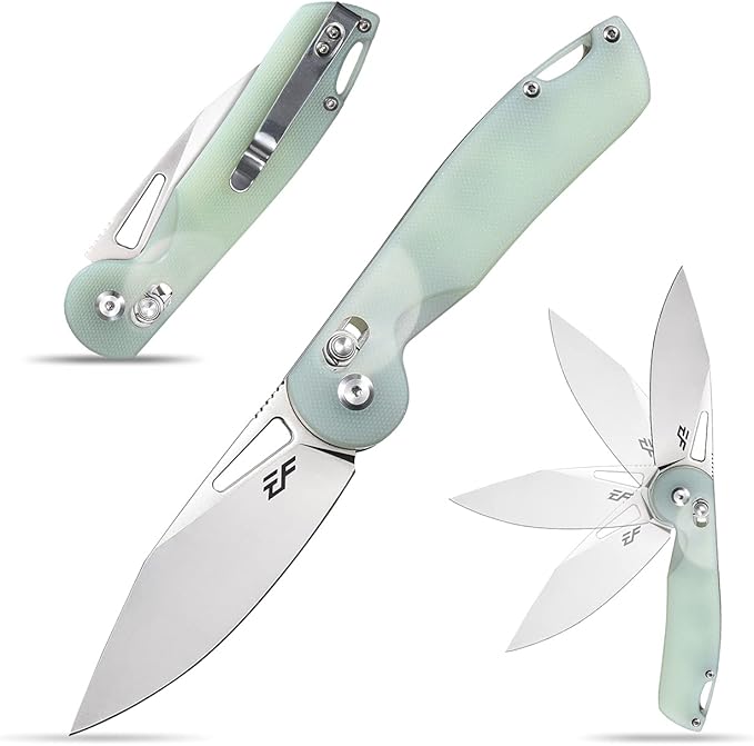 Eafengrow EF950 Folding Knife Pocket Knives D2 Steel Blade G10 Handle Ball Bearing with Pocket Clip Outdoor Camping Knifes(Jade)