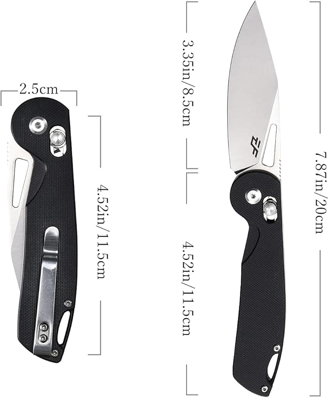- Eafengrow Folding Knife : Total length:7.87 inch.Blade length:3.35 inch.Handle length:4.53 inch.Blade width:2.5 cm.Blade thickness: 0.35 cm.Knives net weight:3.7 oz/ 105 g.
