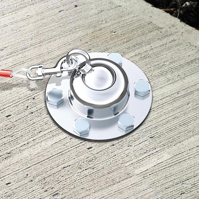 - ❤ Easy to Use & Easy to carry: Only need a hammer and put the Six 8 inches long bolt anchors into rocky or hard ground to fix the swivel base. This dog anchor system can stand up 1000 lbs of pull force. Of course, you can install this dog tie out stake in a wood deck or concrete floor using proper bolts. The end, what you need to do is clip the cable to your dog collar.