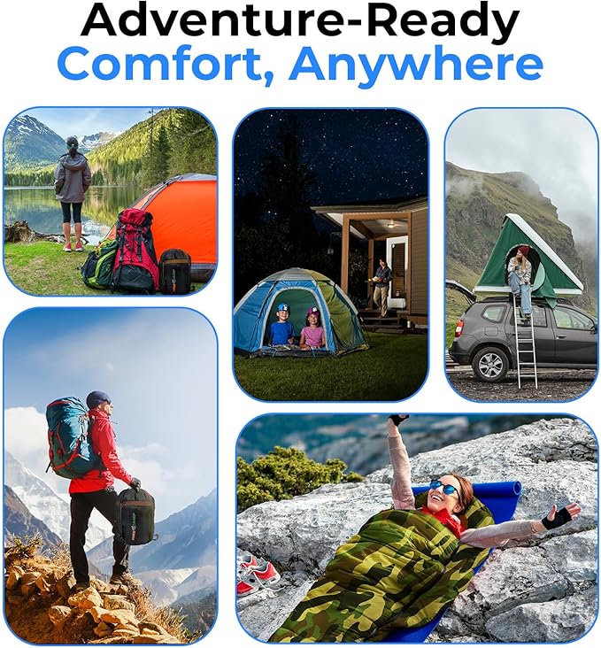 - LIGHTWEIGHT EASY TO CLEAN: This sleeping bag outdoor is easy to clean, warm, comfortable, & washable. Has 5-10° Fahrenheit temperature rate to keep you warm and rolls into a compact size and easily fits inside the included compression backpack