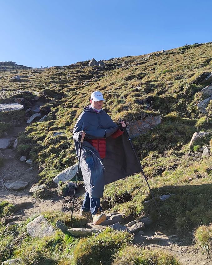 - Multifunctional. With the buttons and elastic straps, this blanket can be used as quilt, poncho, shawl, temporary sleeping bag. You can also put two blankets together and make it one two-person sleeping bag. Keeping you cozy while sitting around the fire or on your couch, lying in hammocks, reading books, tailgating, cooking meals. Perfect for camping, backpacking, hiking, mountaineering, traveling, lounging, picnics, beach trips, concert events, airplane trips, and other outdoor activities.