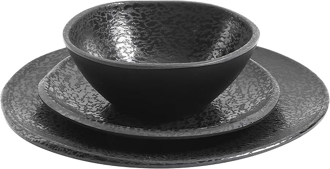 Gibson Home Yoko Round Melamine Plastic Dinnerware Set, Service for Four (12pcs), Matte Black