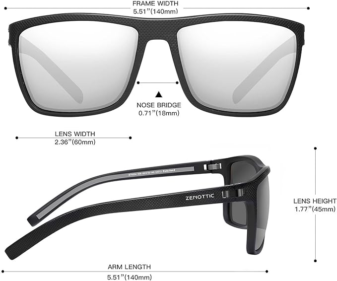 ZENOTTIC Polarized Sunglasses for Men Lightweight TR90 Frame UV400 Protection Square Sun Glasses