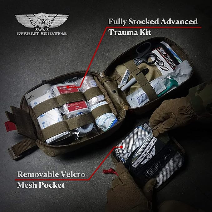 - ✅【Everlit Emergency Trauma Kit】: Uniquely customized by U.S military VETERANS to get you well-prepared in advance to emergencies during the outdoor adventure, hunting, camping, travel, disaster, and accident. The Everlit Emergency Trauma Kit is ideal for field tactical medics, police, military, combat life savers, first responders, outdoor enthusiasts and more!