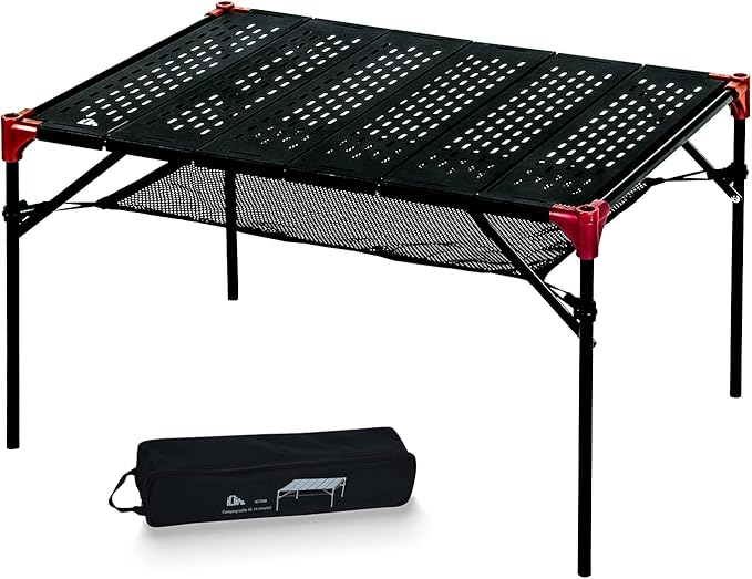 iClimb Extendable Folding Table Large Tabletop Area Ultralight Compact with Hollow Out Tabletop and Carry Bag for Camping Backpacking Beach Concert BBQ Party, Three Size (Black - XL)