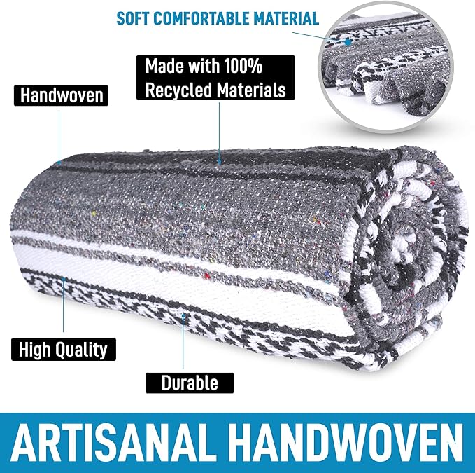Authentic Extra Large Mexican Blanket - 70"x50" Handwoven Yoga, Serape, Artisanal Falsa, Beach, Camping, Picnic, Outdoor Blanket (Oxford)