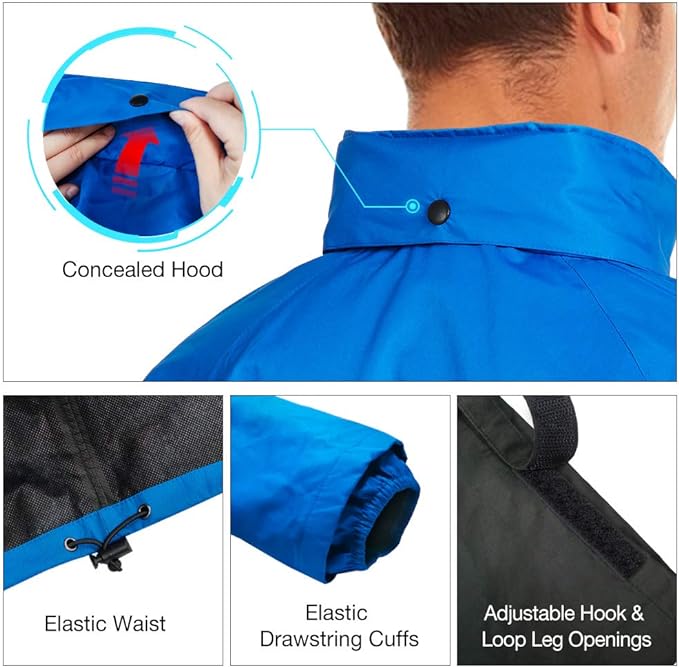 - User-Friendly: TideWe rain suits are designed with plenty of adjustable components to keep the rain out (cuffs, waist, hood) and customize your fit easily. Our rainwear offers 2 large side pockets to make you easy to access your gears. Better still, it is easy to carry and store your suit with the air mesh bag.