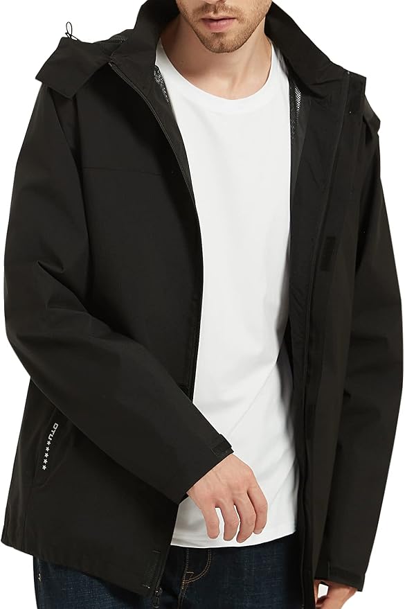 OTU Men's Lightweight Waterproof Hooded Rain Jacket Outdoor Raincoat Shell Jacket for Hiking Travel