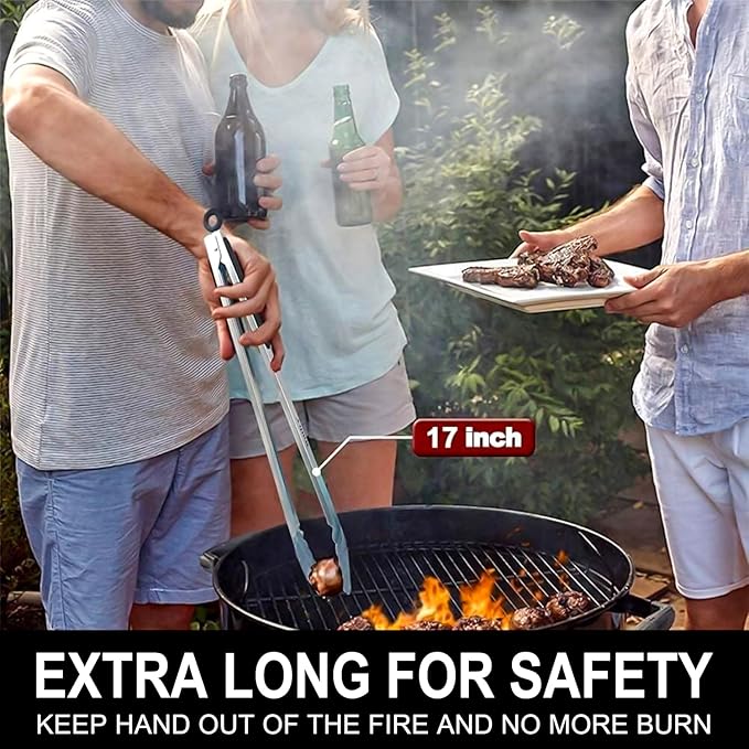- ★17 Inch Extra Long BBQ Tongs - Protect your hands from the heat. Perfect for bbq, cooking, grilling, buffet serving, barbecue and camping outdoor etc.