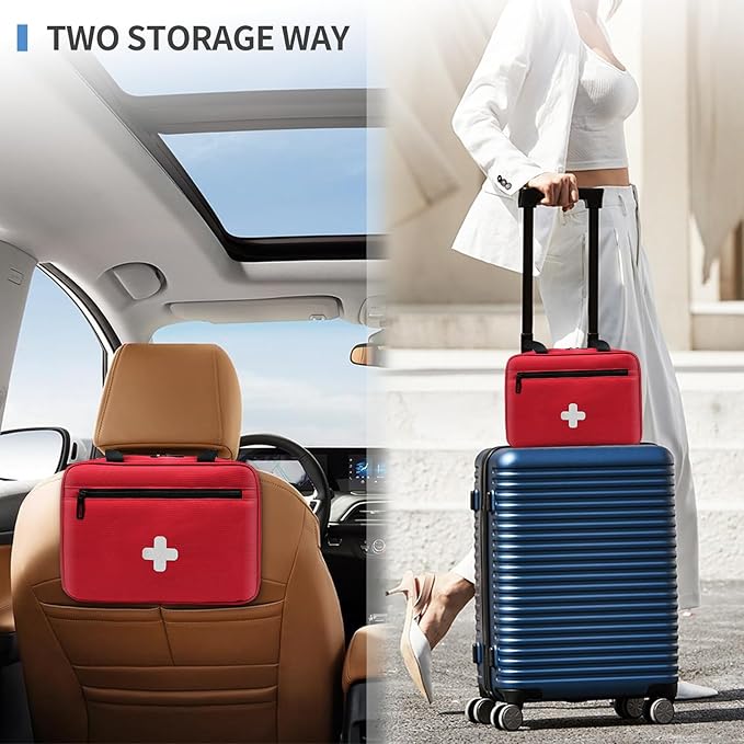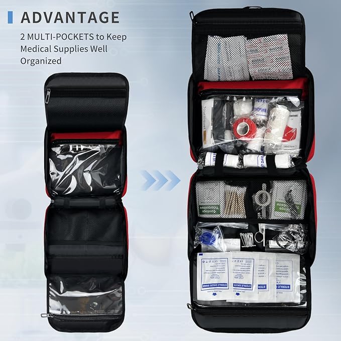 - 【MULTI-POCKET STORAGE】The first aid kit adding two additional pockets on top of the existing two internal pockets provides extra space for your medical essentials.The transparent pocket design allows you to quickly identify items.