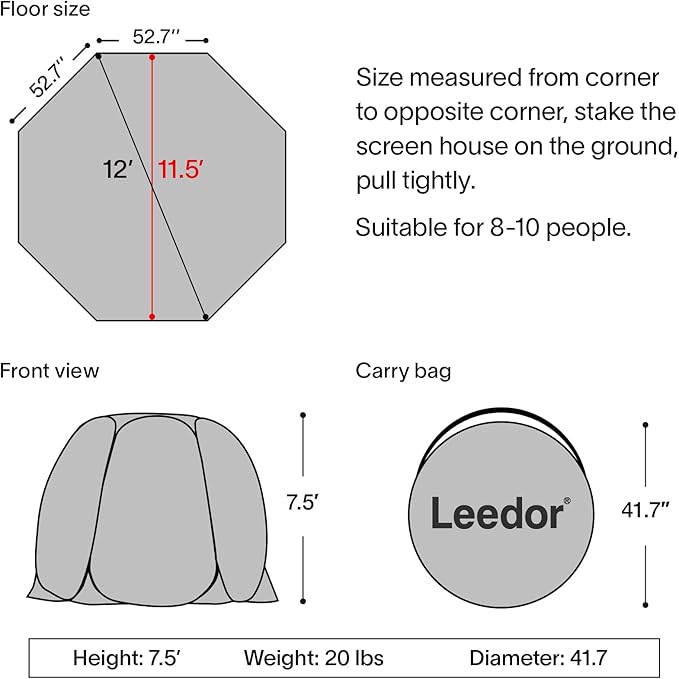 LEEDOR Pop Up Screen House, 6-10-15 Person Outdoor Screen Tent,Camping Screen Room with Carry Bag, Screened Gazebo with Mosquito Netting, Instant UV Resistant Sun Shelter for Garden, Patio, Backyard