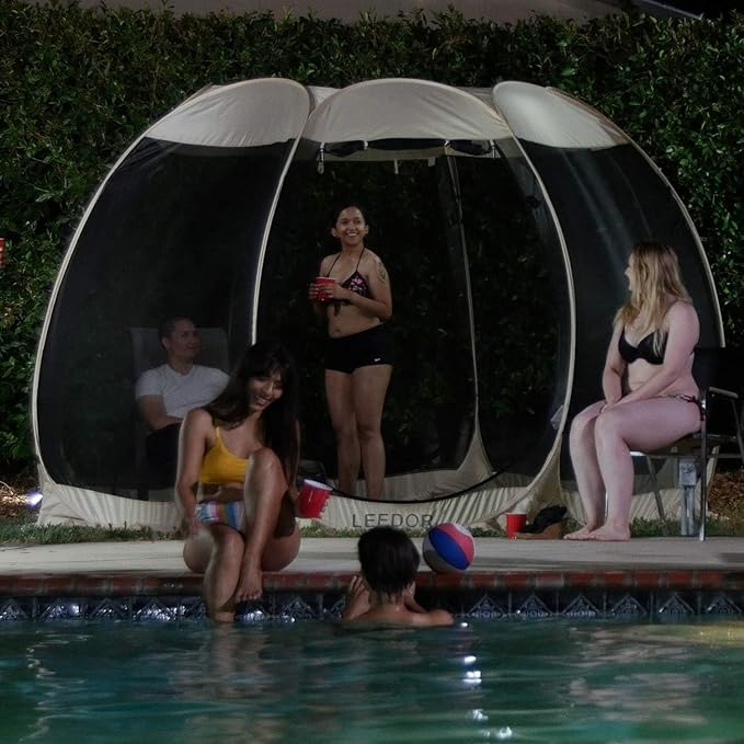 LEEDOR Pop Up Screen House, 6-10-15 Person Outdoor Screen Tent,Camping Screen Room with Carry Bag, Screened Gazebo with Mosquito Netting, Instant UV Resistant Sun Shelter for Garden, Patio, Backyard