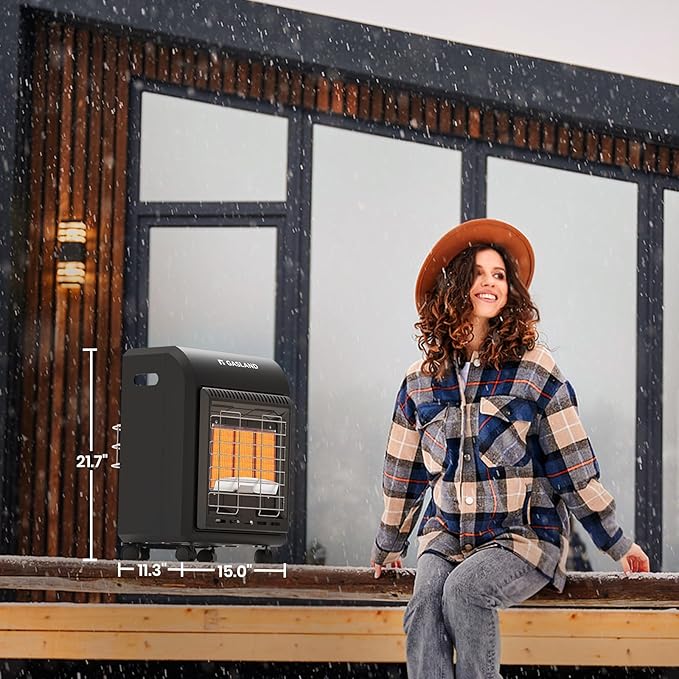 - ☀【Mobile & Space Save Design】The Gasland portable propane radiant heater features a convenient, mobile, and space-saving design intended for use in ventilated garages, offices, and workshops. Move this heater effortlessly from room to room, thanks to the built-in rolling wheels and Easy-Carry handle. The tank is housed inside the cabinet, keeping it out of sight, which enhances the heater's aesthetic appeal.