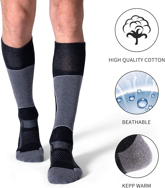 - HIGH QUALITY: These ski socks are made with high-quality cotton and feature terry bottom technology, ensuring your feet stay warm and cozy while skiing. Say goodbye to cold toes and enjoy your day on your skiing day without any worries