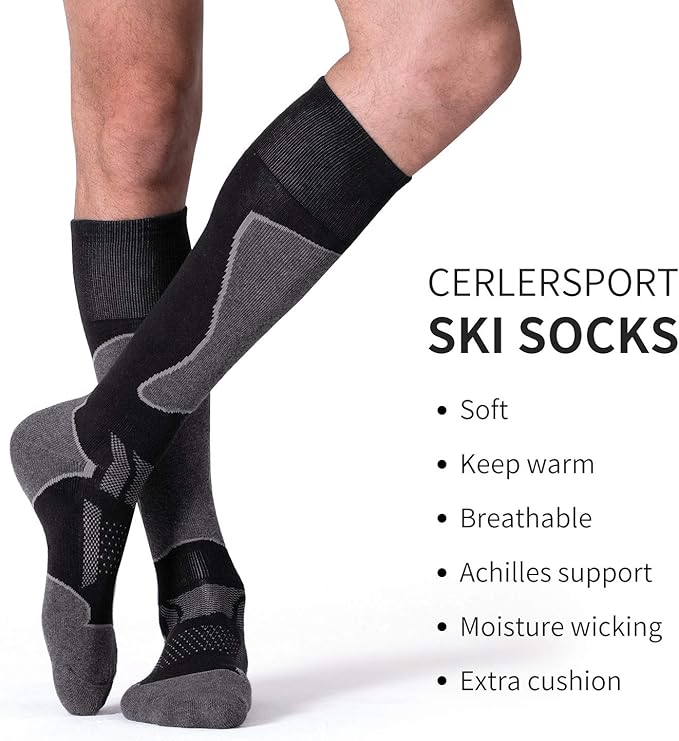 - HIGH PERFORMANCE: These moisture-wicking knee-high ski socks not only keep your feet feeling fresh but can also be used for ice skating, camping, snow sports, trekking, hiking, and more