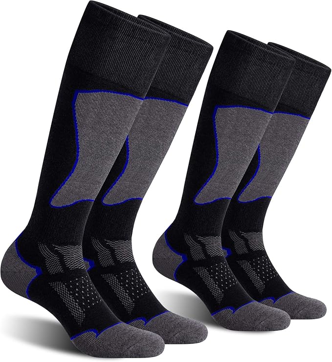 - COMFORTABLE FIT: These ski socks have a lightweight thickness, ensuring a perfect fit with your ski boots. With cushioning in the shin, ankle, and foot areas, they keep your feet warm, dry, and reduce foot pain during sports or daily activities