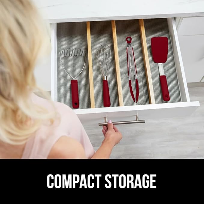 GORILLA GRIP Stainless Steel Heat Resistant Kitchen Tongs for Cooking, 9 + 12 Inch, Set of 2 BBQ Tong, Non Scratch Silicone Tip for Pan, Strong Grip, Grab Food, Toss Salad, Air Fryer, Pull Lock, Red