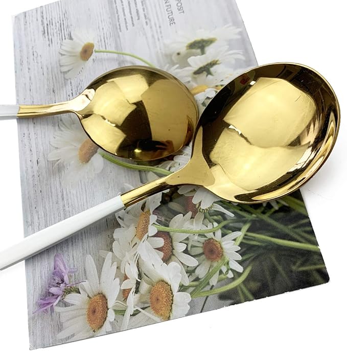 - 【LUXURY & ELEGANT DESIGN】: The elegant rounded curves make them truly timeless, proper gauge thickness and weight to hold comfortably, is ideal for dinner parties, celebrations and wedding.Great gift for Thanksgiving/ Christmas Eve/ Christmas/ New Year's Day.Smooth surface makes these silverware set easy to clean,luxury modern design would match well with your existing cutlery and elevate everyday meals into a fine dining experience.