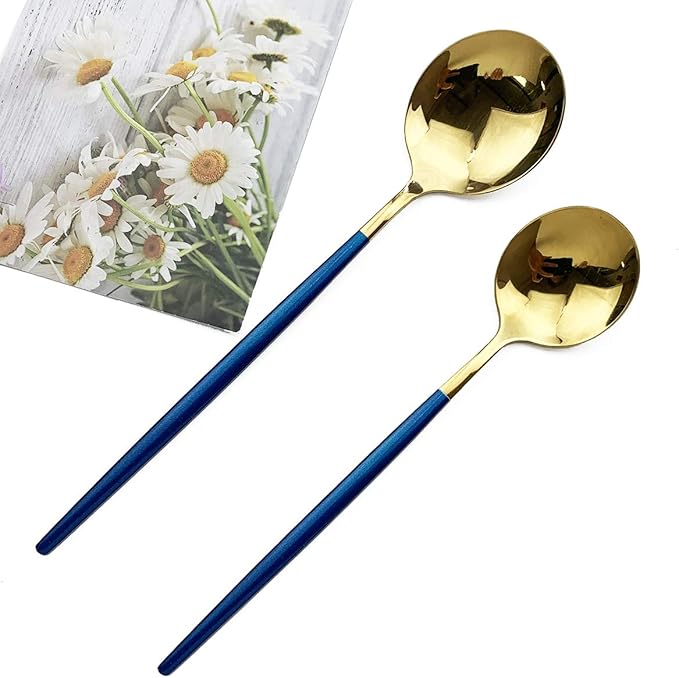 Blue Gold Silverware Set, JASHII 30-Piece Stainless Steel Satin Finish Flatware Set, Kitchen Utensil Set, Mirror Polished Tableware Cutlery Set for Home and Restaurant, Dishwasher Safe