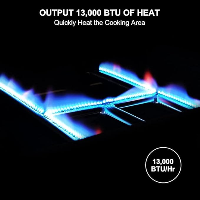 - 【Fast & Even Heating】--13,000 BTU of heat output, quickly and evenly heat the cooking surface. The temperature control and the food turned out juicy and delicious. Amazing for burgers, French toast, steaks, bacon and more.